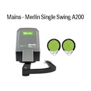 Merlin's Swing A 200 Swing Gate Opener is suitable for residential single swing gates up to 2.5 metres. IP44 rated, the Merlin Swing A 200 provides heavy lifting power performance for two swing gates up to:200kg for 1.5m gate150kg for 2m gate100kg for 2.5m gateMains or Low Voltage options available. myQ capable and Battery Backup compatible.Powerful, quiet and compliant to Australian and New Zealand Standards, enjoy complete peace of mind with 3 Year Warranty and built in premium safety reversal technology, to ensure your family and possessions are protected.Loaded with Merlin Security+2.0 encryption rolling code technology means perfect operation under all environment conditions and from a greater distance than ever before.